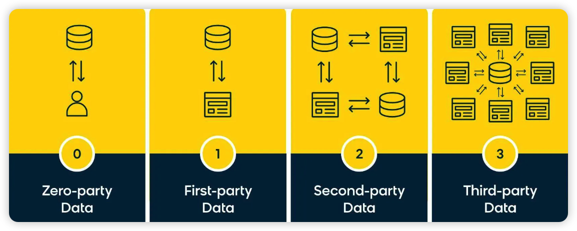 除了零方数据,还有第一方、第二方和第三方数据。让我们分别做一个简短的分类: